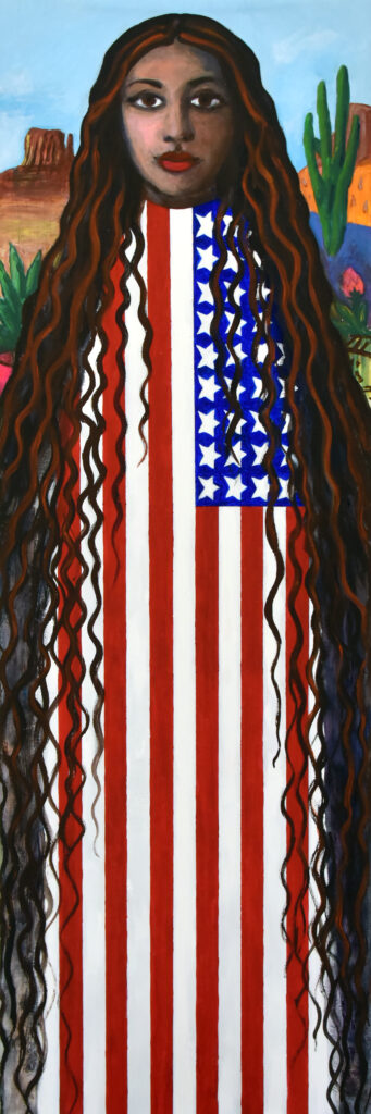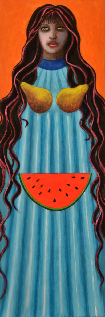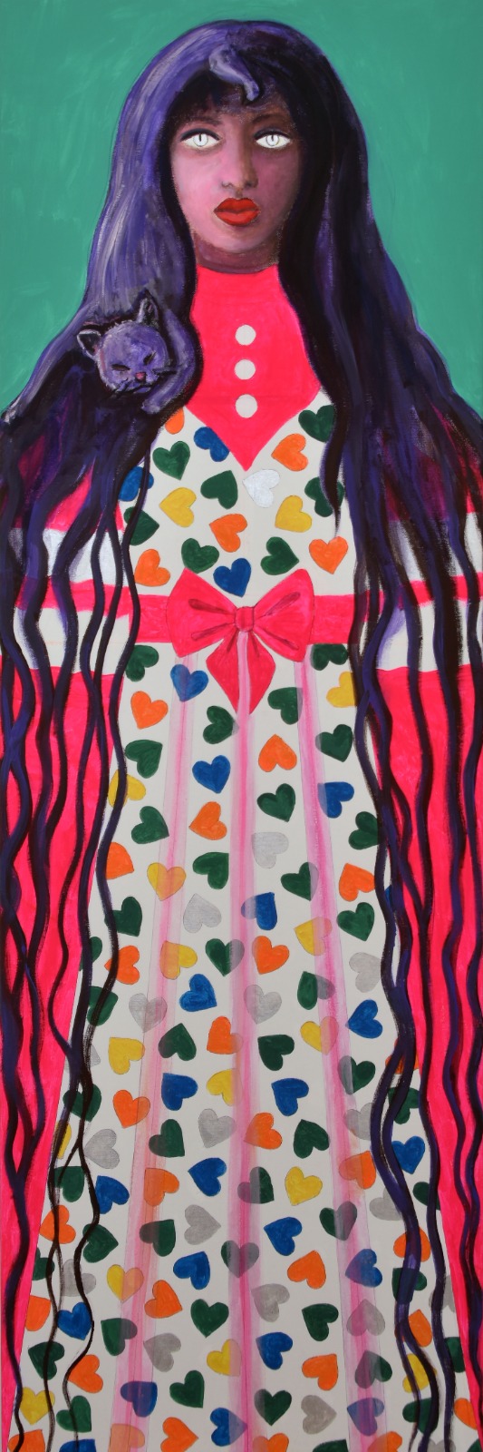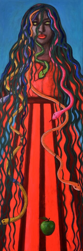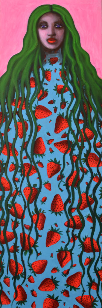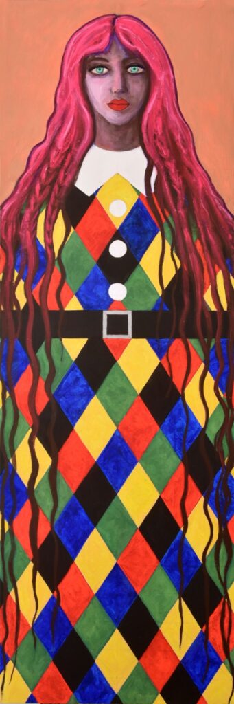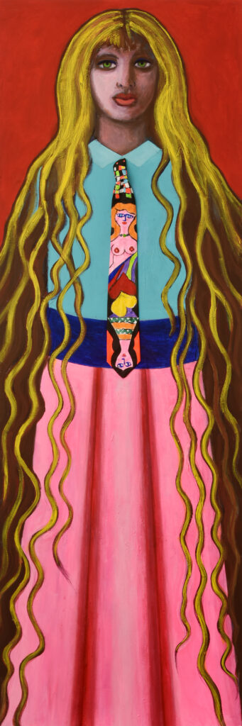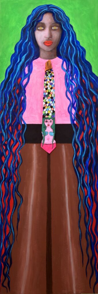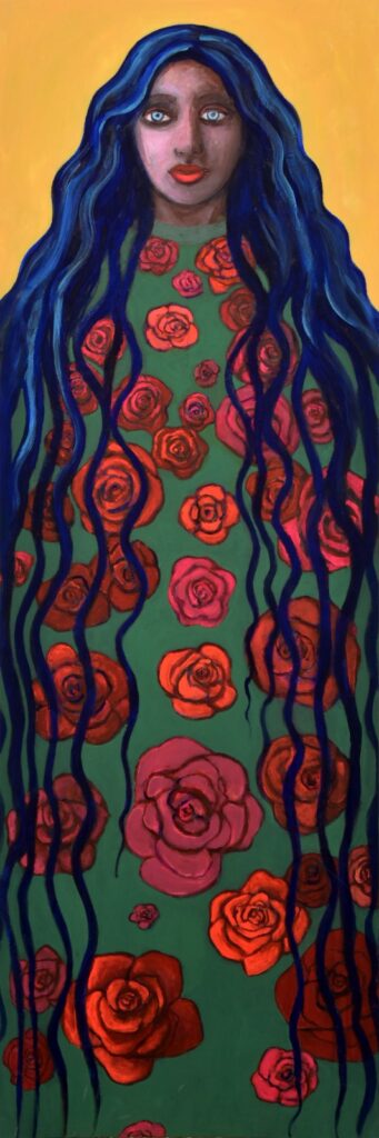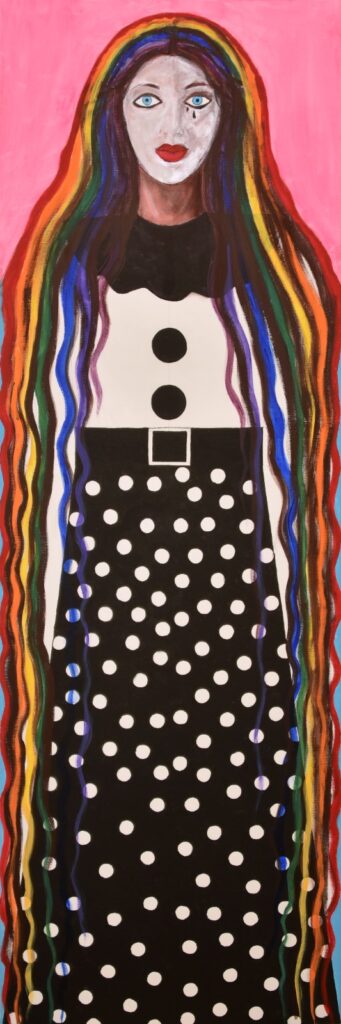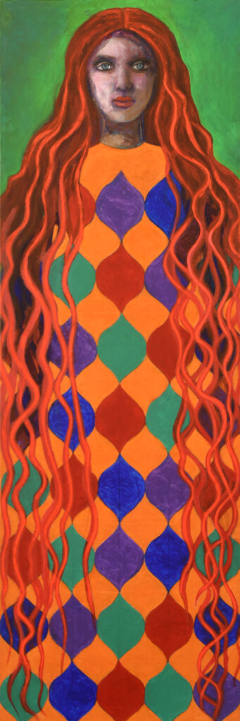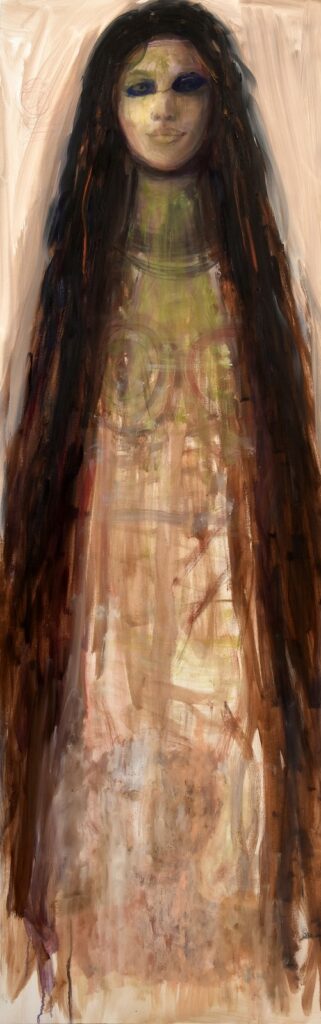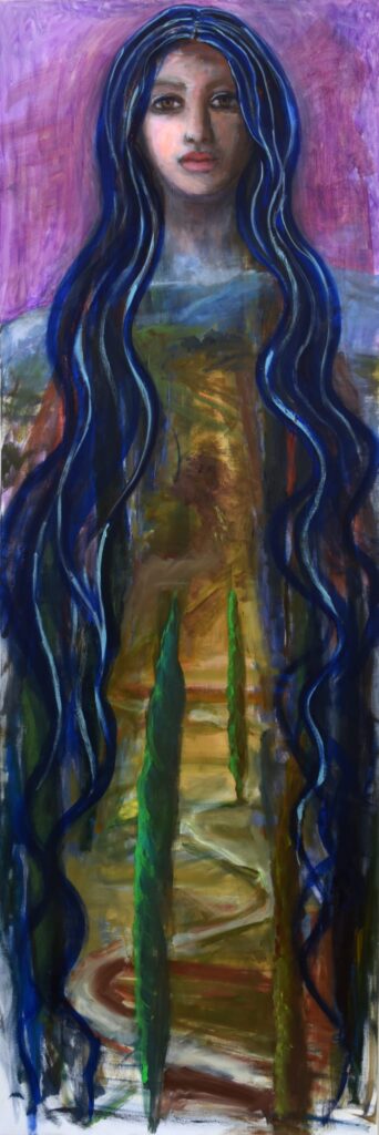 The set of  art works called Only hope of salvation awakes people to the art saves ourselves because it forces us to lay bare our most hidden emotions. The women represented are parts of me, of my soul and my femininity, which find expression and liberation in these paintings. These figures with long hair, with a strong vertical movement, all variations of the same subject, give the spectator the sensation of being in front of real apparitions, feeling almost overwhelmed by their grandeur. There are strong personal references to the Neapolitan school of the twentieth century, especially for the use of bold colours, for example the fluorescent green and red which recall the paintings of Gianni Pisani and Armando De Stefano,  such as are the references to German Expressionism. Managing to merge anger, anguish and joy into a single visual experience, they instill an intense feeling of wonder.